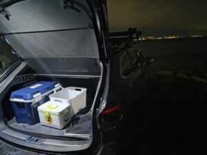 と言うワケでは、ご紹介した道具一式を車に積み込んだ状態が、ご覧の感じとなります。