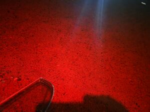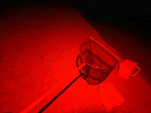 この赤色ライトだと逃げるタイミングが遅くなる感じで、ワカサギを見付けてから、掬う動作をしっかりと取るまで逃げない感じなので、より掬いやすいと感じました。