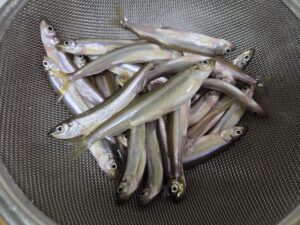 そんなウンチクは置いておき、この日は、接岸するワカサギの量が多かったみたいで、次々に掬うことが出来ました!