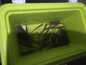 ひと掬いで、5~6匹入ることも多く、約1時間30分で、121匹を掬うことに成功しました♪