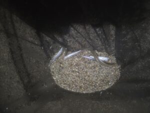 ワカサギは、12月~2月頃の冷え込んだ夜に、琵琶湖の浜辺や小規模流入河川の浅い砂利の場所に産卵の為に接岸します。