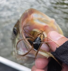 全てのバスが、腹パンパンで、ミニスコーンジグを丸飲みでしたので、釣れる数は少ないものの、この丸飲み状態が正解であることを物語ってくれました。