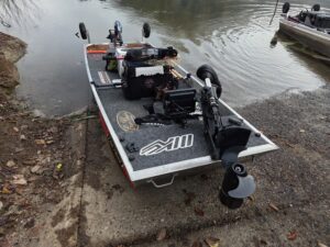 あと、ショートカットしたエレキマウントですが、自宅でDIYをして、マウントの位置を少しだけ前方へズラしました。
