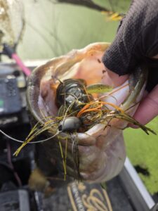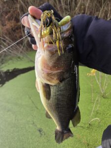 このセットアップだと、バンク沿いのブッシュ+浮草ゾーンでも、ストレスなくジグストが出来るので、アリだと感じました。