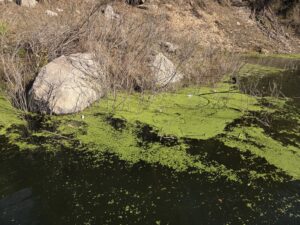 先週、フッキングミスが連発した際、派手目のバイトではなかったことから、浮草の下に居るには居るけど、水面を激しく割って食うまでのテンションは無いと判断し、今回は、浮草直下を狙うことにしました。