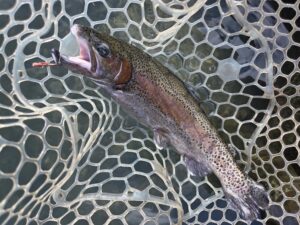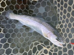 ターゲットなるニジマスなどのマス系の魚達は冷水を好むとは言え、さすがに冷え込みが続いて、水温が低下すると、ボトム付近に固執する様になります。