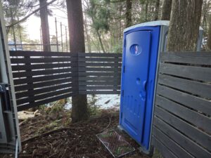 あと、トイレですが、あるにはあるんですが、お世辞にも綺麗とは言えず、ご覧の様な簡易トイレがあるのみとなっています。