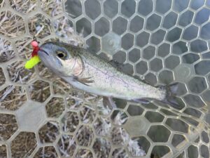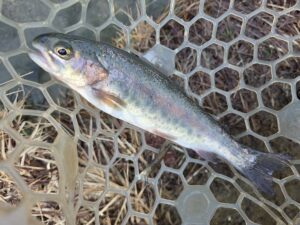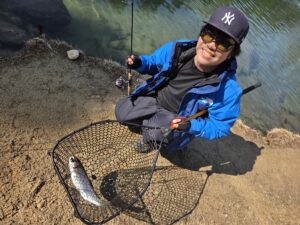 受付施設前の数釣りが出来るポンドも、どクリアに加えて、魚の数が少ない印象があり、定期的な放流が行われている?からか、残っているマス達もスレている感じでしたね。
