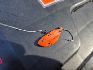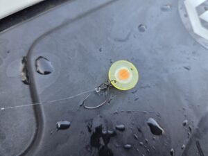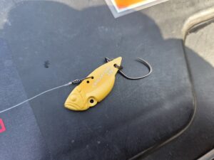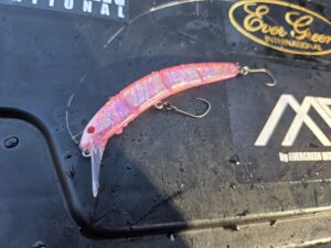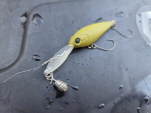 次に、投入したのは、EG/マイクロスレッジのリップ先端に穴を開けてシンカーをぶら下げた仕様で、こいつでボトムジャークをしてみることにしました。