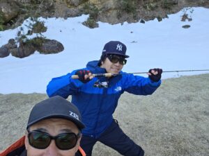 で、実釣に移るワケですが、今回は、エリアトラウト師匠のComaくんに同行してもらいました♪
