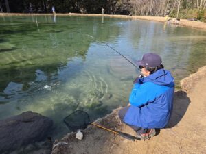 こちらには、比較的サイズが小さい(30~40cmクラス)が多く放流されているポンドとなっています。